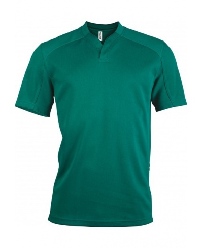 100% Polyester-Interlock / 100% Polyester-Netz. Farblich abgestimmter Netzeinsatz an der Schulter, seitlich und an der Unterseite der Ärmel. Verstärkter V-Ausschnitt. Verstärkte Nähte. Zugfest. Doppelnaht an Handgelenk und Hüfte.