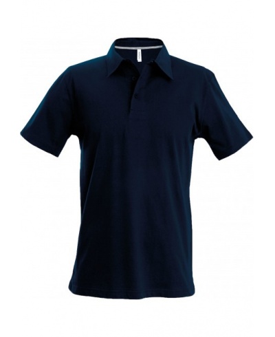 100% Baumwollpiqué. Bei 60°C waschbar. Rippstrick an Kragen und Ärmelabschluß. 3-Knopfleiste. Kontrast-Nackenband und Seitenschlitze an Hüfte. Doppelnahtverarbeitung.