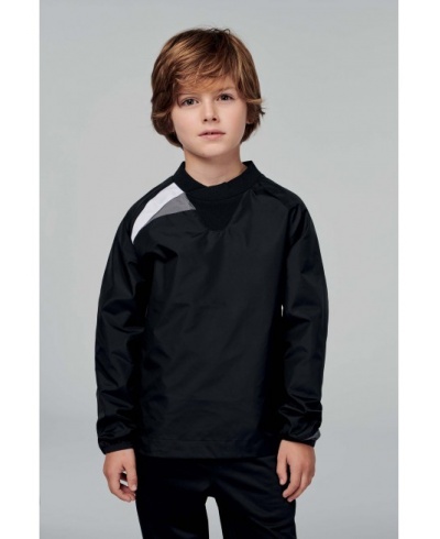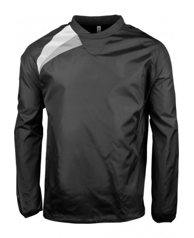 100% Polyamid Oxford, PU-Beschichtung. Wasserabweisend. Feinripp 1X1. Rundhals für leichtes Anziehen. Raglanärmel. Einsätze in Kontrastfarbe an Körper und Ärmelbund. Gummizug an Ärmelbund.