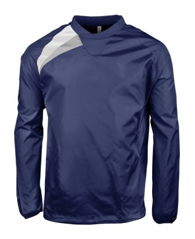 100% Polyamid Oxford, PU-Beschichtung. Wasserabweisend. Feinripp 1X1. Rundhals für leichtes Anziehen. Raglanärmel. Einsätze in Kontrastfarbe an Körper und Ärmelbund. Gummizug an Ärmelbund.