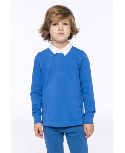100 % Jersey-Baumwolle, vorgeschrumpft u. gekämmt. Kragen aus Baumwoll-Serge in kontrastfarbenem Weiß (in Red mit schwarzem Kragen). Knopfleiste mit 3 Knöpfen. Ärmelbündchen in 1x1-Feinripp. Fischgrätnackenband und Seitenschlitze.