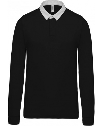 100 % Jersey-Baumwolle, vorgeschrumpft u. gekämmt. Kragen aus Baumwoll-Serge in kontrastfarbenem Weiß (in Red mit schwarzem Kragen). Knopfleiste mit 3 Knöpfen. Ärmelbündchen in 1x1-Feinripp. Fischgrätnackenband und Seitenschlitze.