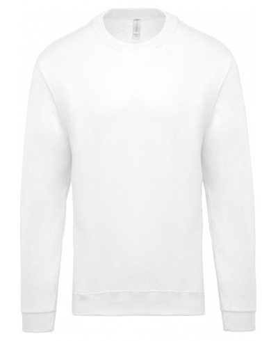 80 % Baumwolle / 20 % Polyester. Gebürstetes Fleece. Set-in-Ärmel. Schlauchware. Strickbündchen an Halsausschnitt, Ärmeln und Saum.