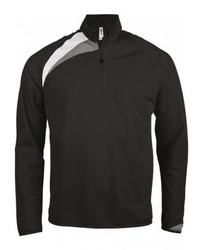 100% gebürstetes Polyester. 1/4 Reißverschluß am Kragen. Einsätze in Kontrastfarbe. Nähte in Kontrastfarbe. Elastische Bündchen an Hüfte und Ärmeln.