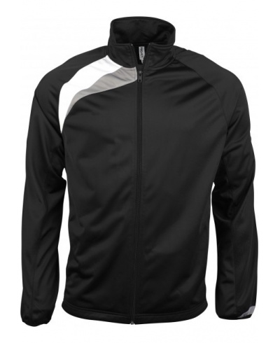100% gebürstetes Polyester. Reißverschluß. Einsätze in Kontrastfarbe. 2 Seitentaschen. Elastischer Bund am Ärmel. Passend zu PA102.