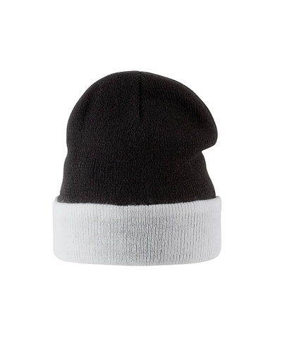 100 % Acryl. Strickmütze mit Umschlag in Kontrastfarbe.