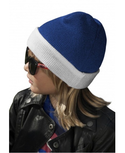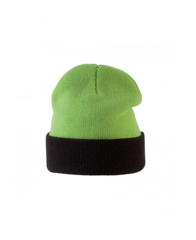 100 % Acryl. Strickmütze mit Umschlag in Kontrastfarbe.