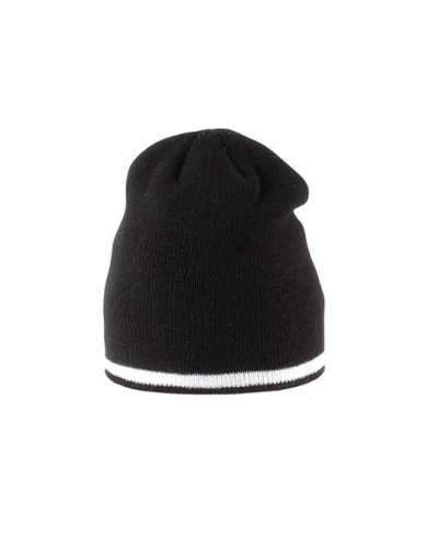 100 % Acryl. Strickmütze mit kontrastfarbenen Streifen am Rand.