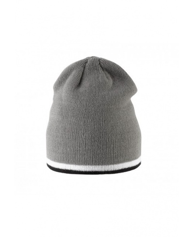 100 % Acryl. Strickmütze mit kontrastfarbenen Streifen am Rand.