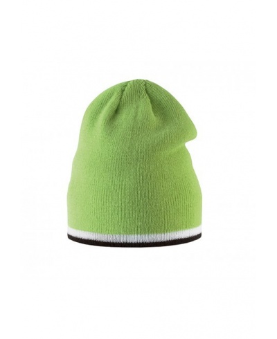 100 % Acryl. Strickmütze mit kontrastfarbenen Streifen am Rand.