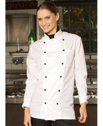 Klassische Kochjacke mit hautfreundlichem Tencel. Weich fließende Qualität. Hohe Feuchtigkeitsaufnahme und schnelle Trocknung sorgen für ein ideales Körperklima. Für optimale Hygiene bei 95° C waschbar.