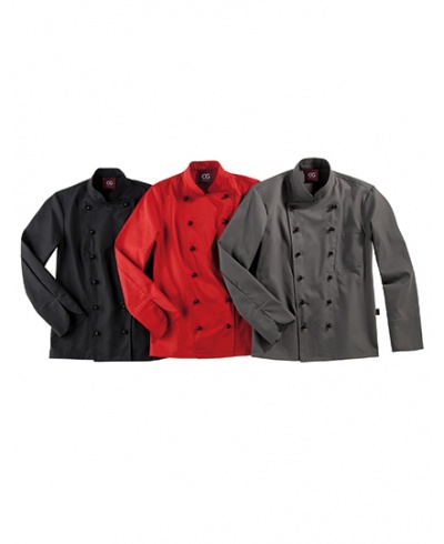 Klassische Kochjacke aus reiner Baumwolle. Ärmeltasche, Langarm mit geschlitzten Manschetten. 12 Kugelknöpfe in schwarz inklusive. Modisch tailliert und ohne Brusttasche. 95° C waschbar, pflegeleicht, strapazierfähig, langlebig.
