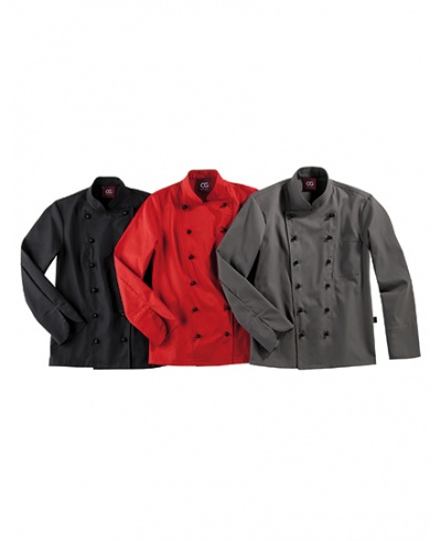 Klassische Kochjacke aus strapazierfähigem Mischgewebe. Brusttasche, Langarm mit geschlitzten Manschetten. 12 Kugelknöpfe in schwarz inklusive. 95° C waschbar, knitterarm, pflegeleicht, farbecht, industriewäsche- und finishertauglich.