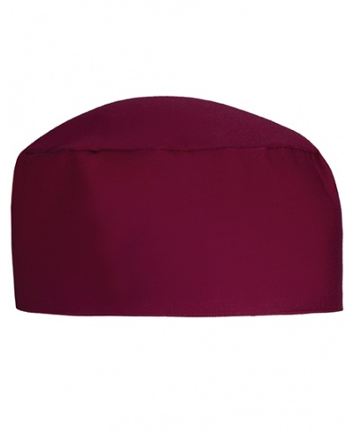 Modische flache Kochmütze mit Gummizug hinten, dadurch variabel im Umfang. Bundhöhe 7,5 cm. 95° C waschbar, pflegeleicht, farbecht, industriewäsche- und finishertauglich.