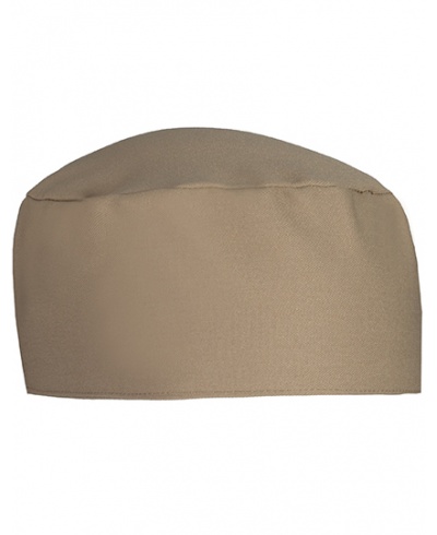 Modische flache Kochmütze mit Gummizug hinten, dadurch variabel im Umfang. Bundhöhe 7,5 cm. 95° C waschbar, pflegeleicht, farbecht, industriewäsche- und finishertauglich.