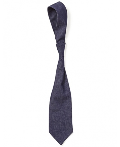 Krawatte aus strapazierfähigem Jeansgewebe. Mit einer Schlaufe, die aussieht wie ein Krawattenknoten, kann sie schnell und einfach befestigt werden.