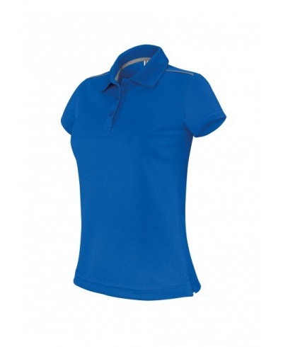 100% Polyester-Interlock Quick Dry ®. Rippstrickkragen. 3-Knopf-Leiste. Nackenband in Kontrastfarbe im Kragen und an den Seitenschlitzen. Kontrastpaspelierung an den Schultern. Doppelnaht an Hüfte und Ärmeln.