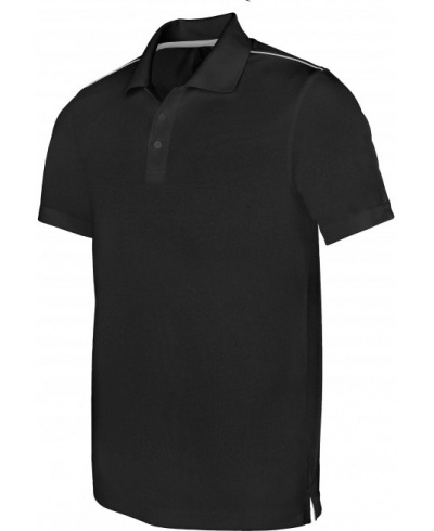 100% Polyester-Interlock. Atmungsaktiv und saugfähig. Rippstrickkragen. 3-Knopf-Leiste. Nackenband in Kontrastfarbe im Kragen und an den Seitenschlitzen. Kontrastpaspelierung an den Schultern. Doppelnaht an Hüfte und Ärmeln.
