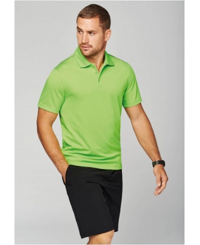 100% Polyester-Interlock. Atmungsaktiv und saugfähig. Rippstrickkragen. 3-Knopf-Leiste. Nackenband in Kontrastfarbe im Kragen und an den Seitenschlitzen. Kontrastpaspelierung an den Schultern. Doppelnaht an Hüfte und Ärmeln.