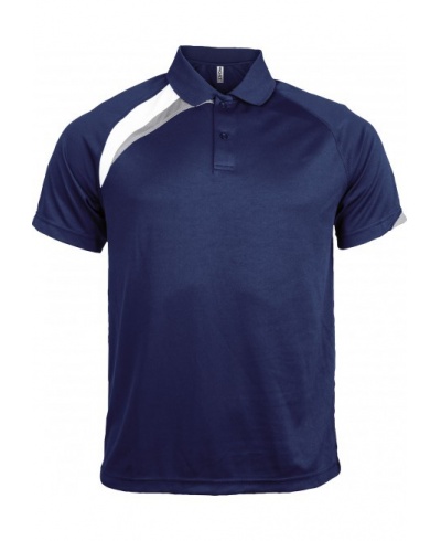 100% Polyester. Schnelltrocknend. Einsätze in Kontrastfarbe. Kragen in Feinripp 1x1 und 2-Ton Knöpfe. Doppelnaht am Arm und unteren Abschluß.