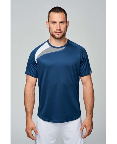 100% Polyester. Schnelltrocknend. Einsätze in Kontrastfarbe. Farblich abgestimmte Nähte. Doppelnaht an Ärmeln und Hüftbund.