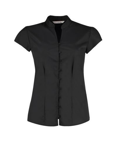 115 g/qm • 65% Polyester, 35% Baumwolle • Bluse im Asia-Look • Kleiner Stehkragen • Angeschnittene Ärmel • Ton-in-Ton Knöpfe in sichtbare Schlaufen geknöpft (keine Knopflöcher) • Figurbetonter, taillierter Schnitt mit Abnähern auf Brusthöhe und im Rücken • Abgerundeter Saumabschluss • Easy Iron Technologie für leichtes Bügeln.