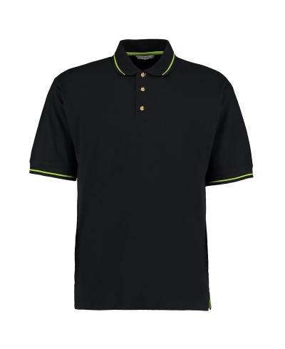 210 g/qm • 100% Baumwolle, gekämmtes Piqué • Nackenband in Kontrastfarbe • 3er-Knopfleiste • Kontrastleiste • Kontrastzierstreifen am Kragen • Halbmond-Passe • Seitenschlitze • Fällt sehr groß aus.