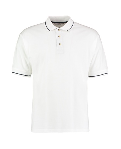 210 g/qm • 100% Baumwolle, gekämmtes Piqué • Nackenband in Kontrastfarbe • 3er-Knopfleiste • Kontrastleiste • Kontrastzierstreifen am Kragen • Halbmond-Passe • Seitenschlitze • Fällt sehr groß aus.