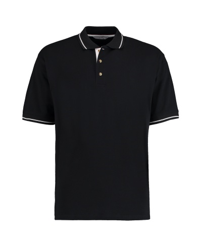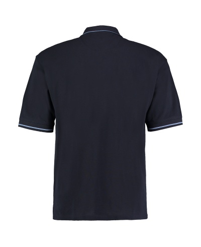210 g/qm • 100% Baumwolle, gekämmtes Piqué • Nackenband in Kontrastfarbe • 3er-Knopfleiste • Kontrastleiste • Kontrastzierstreifen am Kragen • Halbmond-Passe • Seitenschlitze • Fällt sehr groß aus.