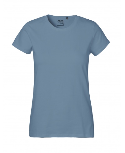 Material: 100% Bio-Fairtrade-Baumwolle, Single Jersey Knit; Gewicht: 185 g/m²; An Taille und Ärmeln leicht tailliert. Rundhalsausschnitt, Elasthan-Rippstrick-Nackenbügel. Nackenband, ringgesponnene gekämmte Baumwolle; Gewicht: OEKO-TEX® STANDARD 100, 100% CERTIFIED ORGANIC COTTON, FAIR WEAR, EU ECOLABEL, SA8000, NEUTRAL® RESPONSIBILITY