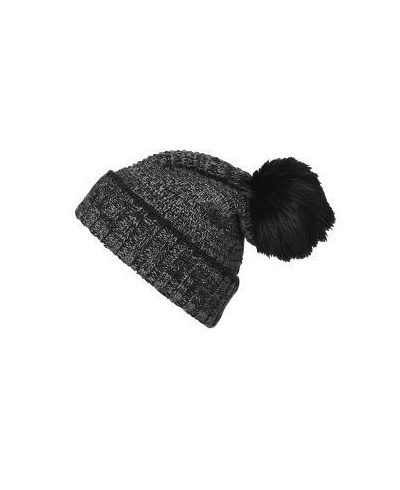 Melierte Strickmütze mit Umschlag und großem Pompon