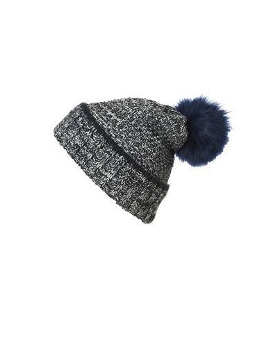 Melierte Strickmütze mit Umschlag und großem Pompon
