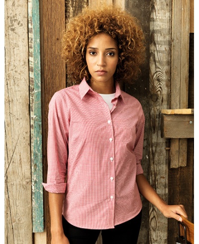 Eine willkommene Ergänzung der bestehenden Langarm-Damenblusen von Premier. Dieser Stil spiegelt die neuesten Corporate Styles wider, die im Bürobereich getragen werden. Der Gingham-Print und das weiche Kragen-Styling bieten einen lässigen Ansatz für Arbeitskleidung, aber der geknöpfte Kragen und die Manschetten sorgen dafür, dass dies immer noch eine kluge Wahl für Geschäftsleute ist. Hergestellt aus 100% Baumwolle für eine weiche und bequeme Bluse, die in vier beliebten Farben erhältlich ist.