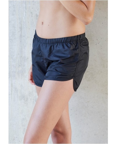 100% Mikro-Polyester 50D. Leichter, schnelltrocknender Stoff. Elastischer Kordelzug an Hüfte. Freischnitte an den Seiten. Kleine Innentasche vorne. Unten doppelt gesäumt.