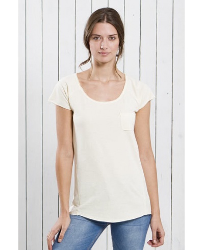 Round neck. Raglan sleeve. T-shirt with pocket. Rib in the same fabric of body.