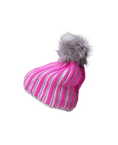 Strickmütze mit Kontraststreifen und Pompon
