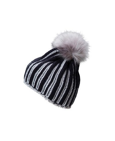 Strickmütze mit Kontraststreifen und Pompon