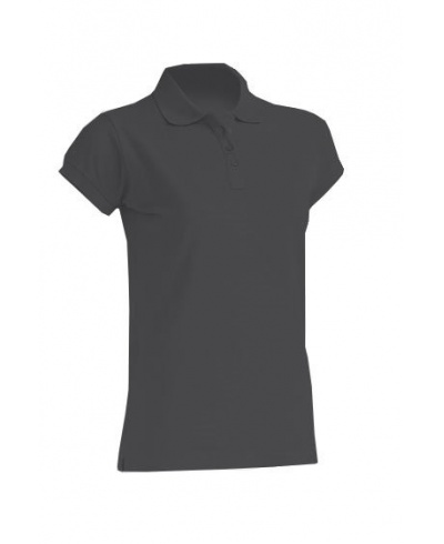 Kurzärmeliges Polo-Shirt für Damen. Körper gepasst. Piqué-Gewebe. Knopfleiste mit drei Knöpfen. 1x1 Rippkragen und Manschetten. Seitenschlitze. Grey Melange: 85% Baumwolle / 15% Polyester.
