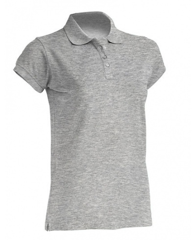 Kurzärmeliges Polo-Shirt für Damen. Körper gepasst. Piqué-Gewebe. Knopfleiste mit drei Knöpfen. 1x1 Rippkragen und Manschetten. Seitenschlitze. Grey Melange: 85% Baumwolle / 15% Polyester.
