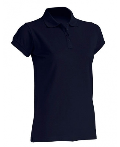 Kurzärmeliges Polo-Shirt für Damen. Körper gepasst. Piqué-Gewebe. Knopfleiste mit drei Knöpfen. 1x1 Rippkragen und Manschetten. Seitenschlitze. Grey Melange: 85% Baumwolle / 15% Polyester.