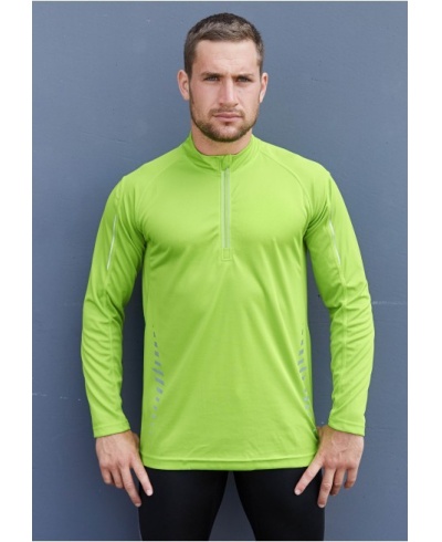 100% Polyester "Quick Dry". Reflektierender Kragen-Reißverschluß. Raglanärmel. Reflektierende Design-Elemente vorne und hinten. Doppelnahtverarbeitung an Ärmeln und Hüfte.