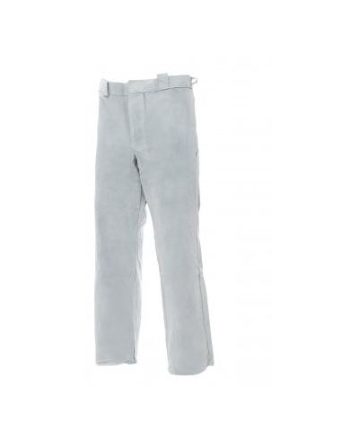 Schutzhose aus Rindspaltleder; Eigenschaften: robust, sehr widerstandsfähig; Stärken: Schutz; Anwendungsgebiete: schwere Handhabung, geeignet für den Kontakt mit heißem, entgratetem Material