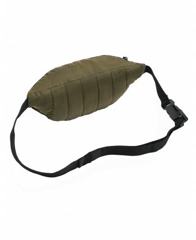 Material: 100 % recyceltes Polyester, fluorfreie DWR; Gewicht: 75g/m²; Verstellbarer Ripsband zum Tragen über der Schulter oder um die Taille, Kunststoffschnalle mit seitlicher Freigabe, Kunststoffversteller, elastischer Stopper, formgebender Abnäher vorne, umgekehrte Reißverschlusstasche aus Nylon, gesteppte Rückseite; Zertifikate: Global Recycled Standard (GRS), Fair Wair, STANDARD 100 by OEKO-TEX®, Peta - Approved VEGAN