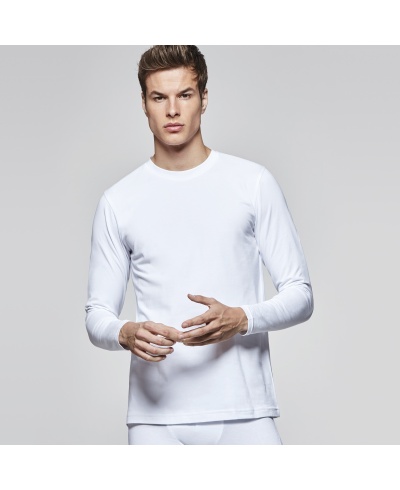 Langarm Unterhemd für Herren, gerippter Rundhalskragen 1x1. Nackenband. Atmungsaktives und konfortables Gewebe.