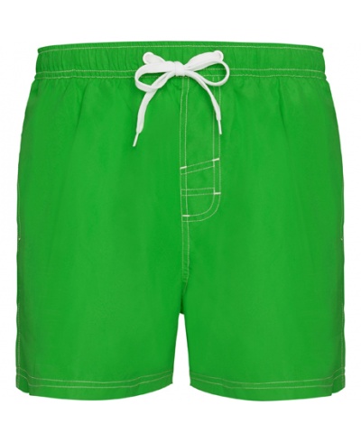 Badeshorts mit elastischem Bündchen. Kontrastfarben bei Kordelzug und Doppelnähten. Angedeuteter Hosenschlitz. Seitentaschen. Gesäßtasche mit verdecktem Reißverschluss. Netzfutter bei Innenhose und Seitentaschen.