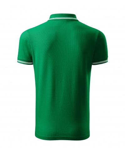 Kragen und Ärmelsäume mit einem Kontraststreifen aus 1:1 Rippstrick