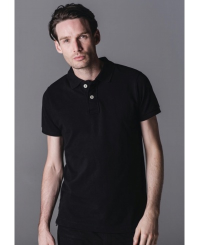 280 g/qm • 100% Baumwolle (Piqué) • Breite 2er-Knopfleiste • Schwerer Rippstrickkragen • Fischgrätnackenband und Verstärkung der Seitenschlitze • Ärmelbündchen aus Rippstrick • Schmal geschnitten • Verlängerter Rücken, Seitenschlitze.