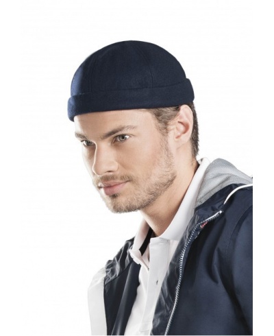 60 % Wolle / 40 % Viskose. Matrosenmütze. Größenverstellbar durch hinteren Klettverschluss.