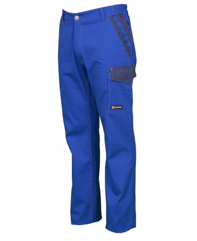 Mehrsaison-Unisex-Hose mit seitlichen Gummizügen und Gürtelschlaufen. Reißverschluss mit Metallknopf, zwei klassische Fronttaschen und eine Reißverschlusstasche, eine LOCK SYSTEM Seitentasche, eine doppelte Maßbandtasche auf der linken Seite, zwei Gesäßtaschen, eine offene und eine mit Klappe und Klettverschluss. Kontrastierende Einsätze und Nähte, Reflexstreifen an der Gesäßtasche, Dreifachnähte am Innenbein