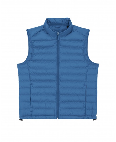 Material: 100 % recyceltes Polyester, fluorfreie DWR; Gewicht: 75g/m²; Taillierter, ärmelloser, hoher Kragen, umgekehrter Nylon-Reißverschluss vorne in der Mitte, Leistentaschen mit Reißverschluss und zusätzlichem Grosgrain-Puller, elastisches Band am Armloch, vollständig gesteppt, Seiteneinsätze für eine bessere Form, innen eingefasste Nähte, unterer Saum mit verstellbarem Kunststoffstopper und elastischer Kordel; Zertifikate: Global Recycled Standard (GRS), Fair Wair, STANDARD 100 by OEKO-TEX®, Peta - Approved VEGAN